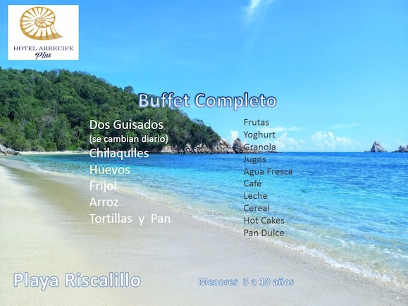 Adultos $190.00 y $160.00 menores de 3 hasta 10 años
